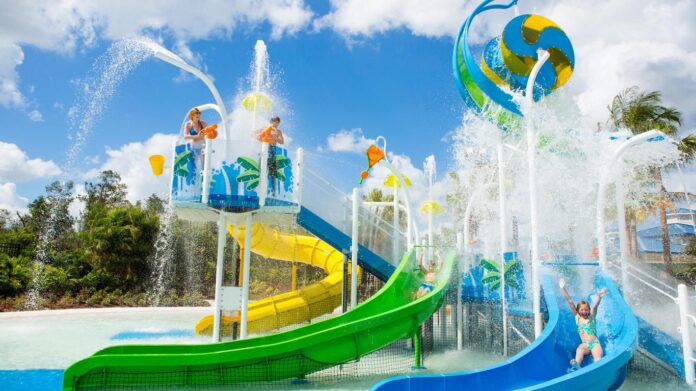 Además de un río lento y varios toboganes acuáticos, los niños no se cansarán de disfrutar de un gimnasio interactivo en la jungla con temática de casa del árbol.