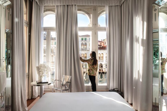 Es natural, pues, que los hoteles de la ciudad flotante de Italia ofrezcan habitaciones barrocas revestidas de terciopelos decadentes y contemporáneos, mientras que los cabañas creativas invitan a un elenco repleto de estrellas, buitres de la cultura y creativos.