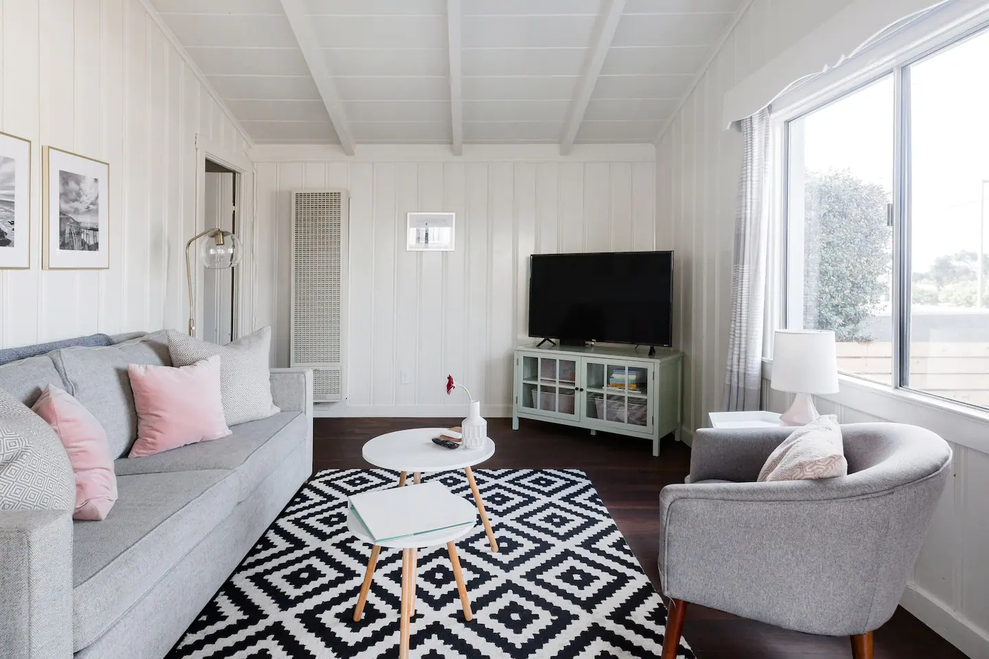 Este bungalow de un dormitorio en Seaside, California, es una base luminosa, elegante y accesible para explorar Monterey y Carmel-by-the-Sea, que están a entre 10 y 15 minutos en coche.